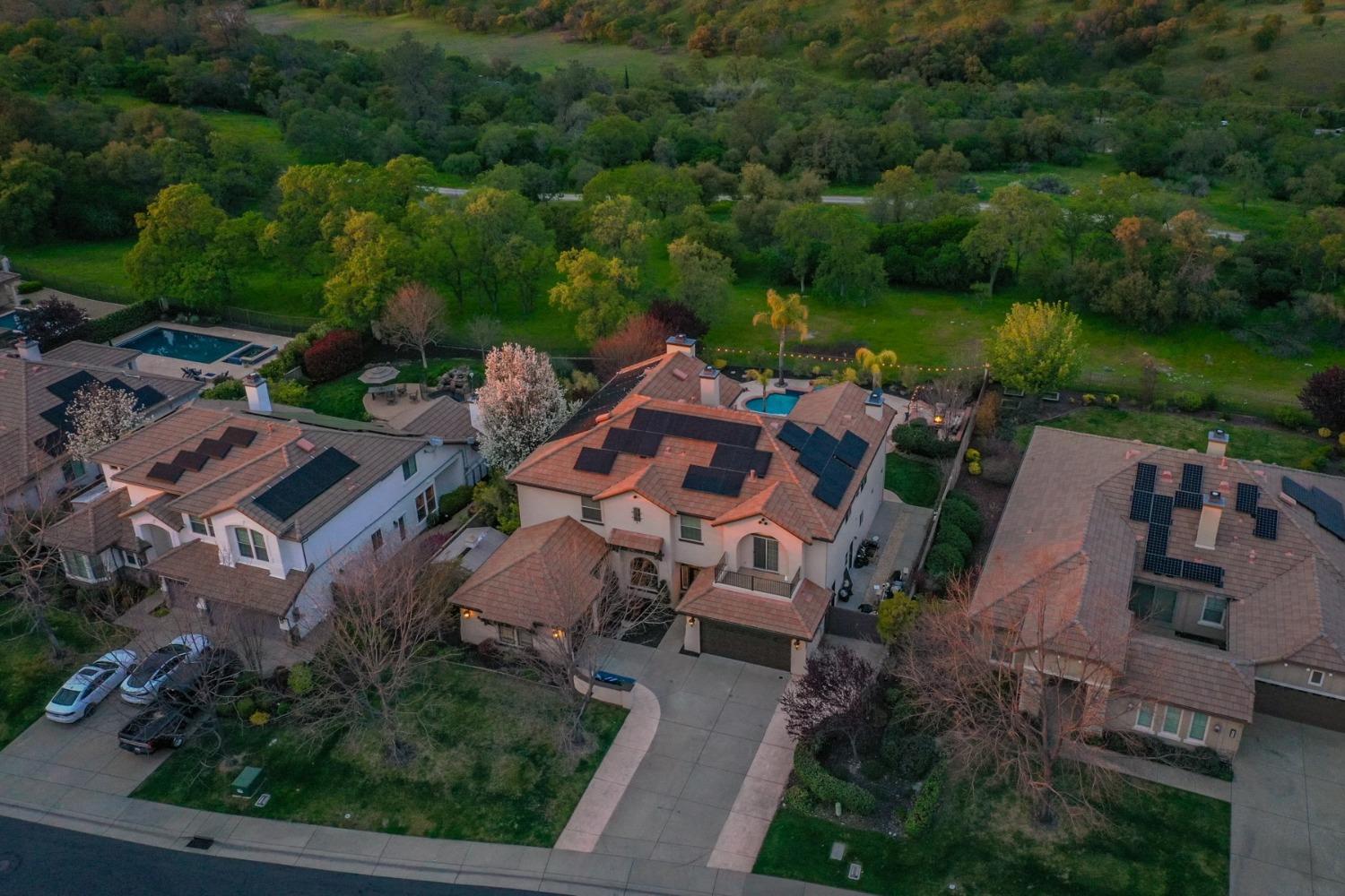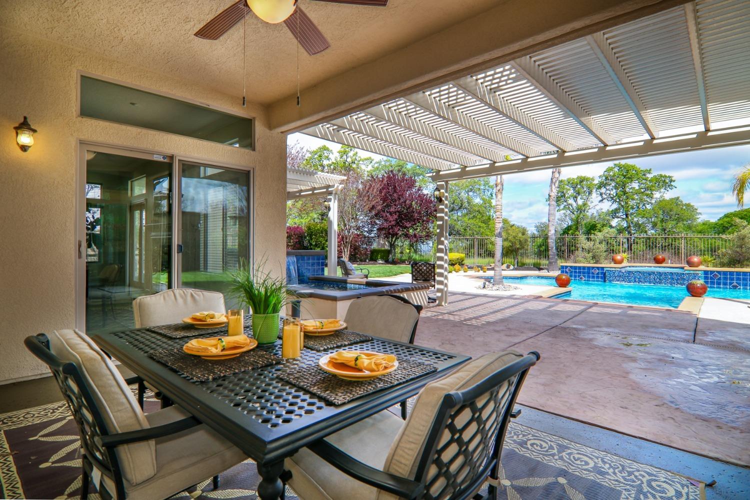 Here it is...great listing in gated, private Verdera...this home has it all! Very rare offering with every feature you've looked for but could not find! Let's start with the location...perfectly situated on a quiet street, this home backs to a gorgeous and private greenbelt. An oversized lot features a resort style pool with waterfalls, spa, a separate custom pond featuring beautiful koi fish, a raised firepit patio and a dedicated BBQ patio. Wide side yards have plenty of room for both yard storage (built-in shed) and boat storage (subject to HOA approval). Inside, this home offers a floor plan that can accommodate many. The 6BR, 5BA floor plan features downstairs guest suite with private bathroom and outside entrance, dual sets of jack and jill bedrooms upstairs (4 bedrooms with two bathrooms), an oversized master suite (including a private balcony and attached workout room), living room, dining room, family room, separate office, movie room and a pool table loft...wow! Saving money is easy with the large, owned solar system, pool solar and front yard maintenance included as part of your HOA dues! Life in Verdera is incredible, with welcoming neighbors, private country club golf, fine dining and amazing walking trails...all within the community gates! This is a must see home!