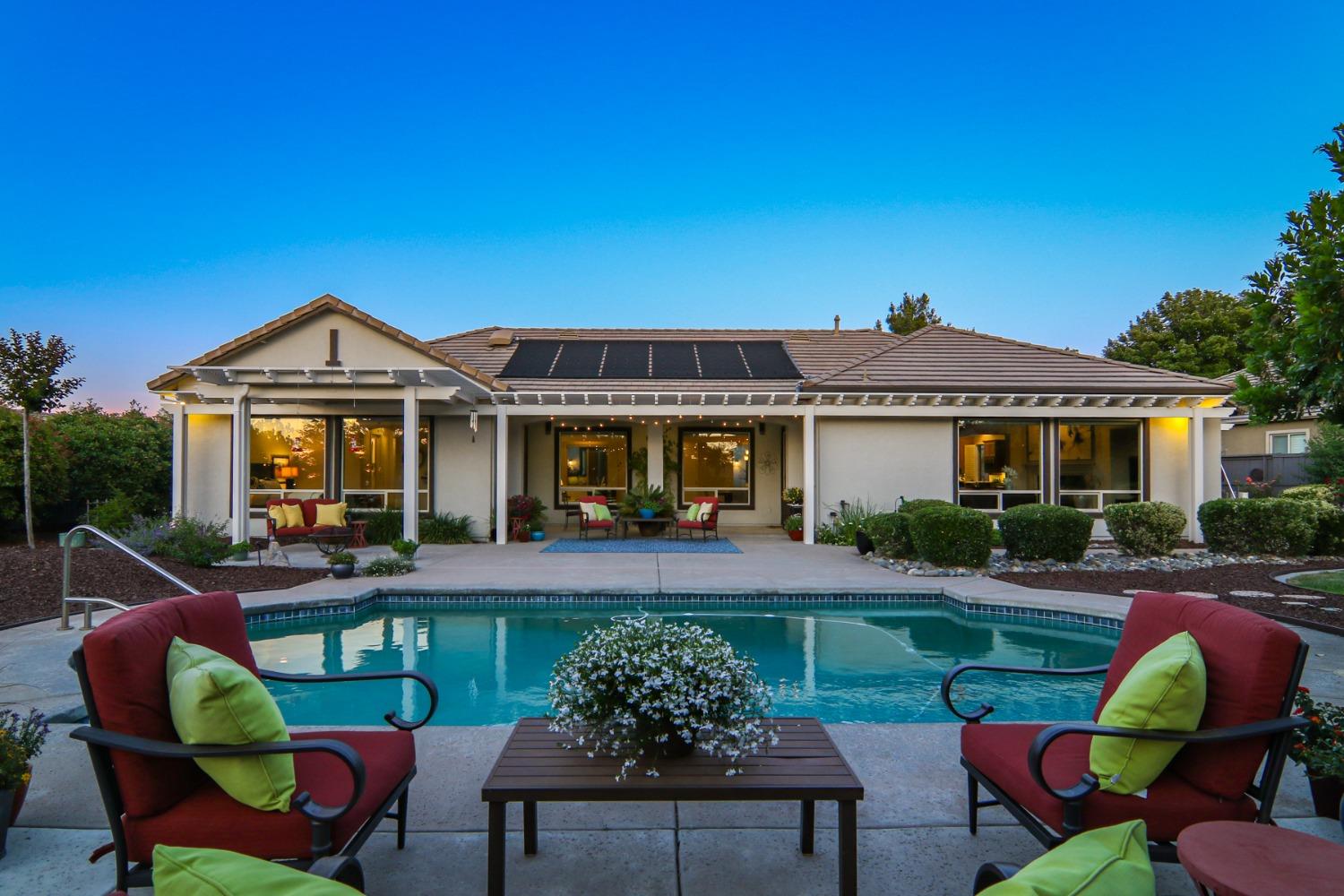 Rare opportunity to obtain a ONE STORY home with POOL AND OWNED SOLAR in the gated single-story-only community adjacent to Catta Verdera Country Club! Unique location nestled within the middle of the community for complete peace and quiet. Inside the home, an open floor plan is highlighted by large windows throughout the main living areas. The master suite has wall-length windows and opens to a California Room. The home office den also opens to its own courtyard. Extensive 3 car garage with unique shop area. Relaxation awaits in a backyard that is perfectly level and easy to maintain. The centerpiece of the yard is a beautiful PEBBLE TEC POOL with POOL SOLAR, perfect for weekend fun. Enjoy a low cost and low maintenance lifestyle with an HOA that maintains your front yard for you (included in HOA fees). Savor the low utility costs that OWNED SOLAR brings and key upgrades such as a new HVAC and furnace! Enjoy life to the fullest at this home that is steps to top golf at Catta Verdera Country Club. Unique opportunity to live in a gated community with beautiful nature, friendly neighbors, walking trails, country club golf, yet 15 minutes to everything! Priced aggressively and below recent sales of this floor plan.